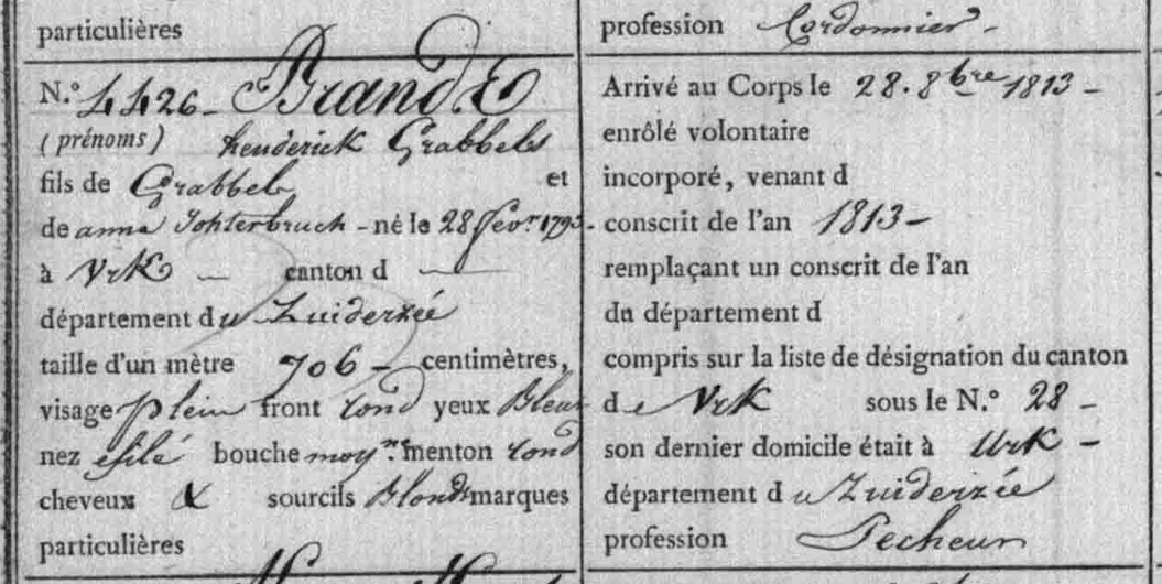 Inschrijving Hendrik Grubbelts. Brands – Service Historique de la Dรฉfense Vincennes.
